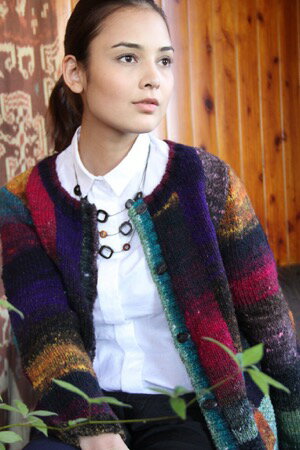 野呂英作の人気毛糸・くれよんで編む 切り替え模様のカーディガンのニットキット(編みものキット)編み針、無料編み図付きです くれよんのカラフルな段染めと縦の切り替え模様が映えて より素敵な作品に仕上がっています ■カラー:368番(掲載作品) ■使用毛糸:くれよん(毛100%) 9玉 ■使用針:2本棒針8号、6号 ■キット内容:着分毛糸、テキスト、2本棒針8号、6号 ※別途ボタンが必要です 直径18ミリ5個 ■サイズ:9号(個人の編み具合によりサイズが異なる場合もございます) ★